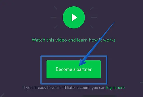 On Affiliate Program page, click on the green button Become a partner.