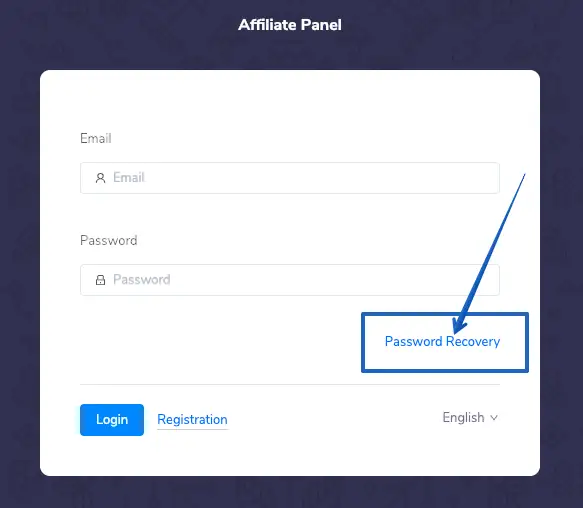Step 1. Go to the Affiliate Panel, then click on Password Recovery