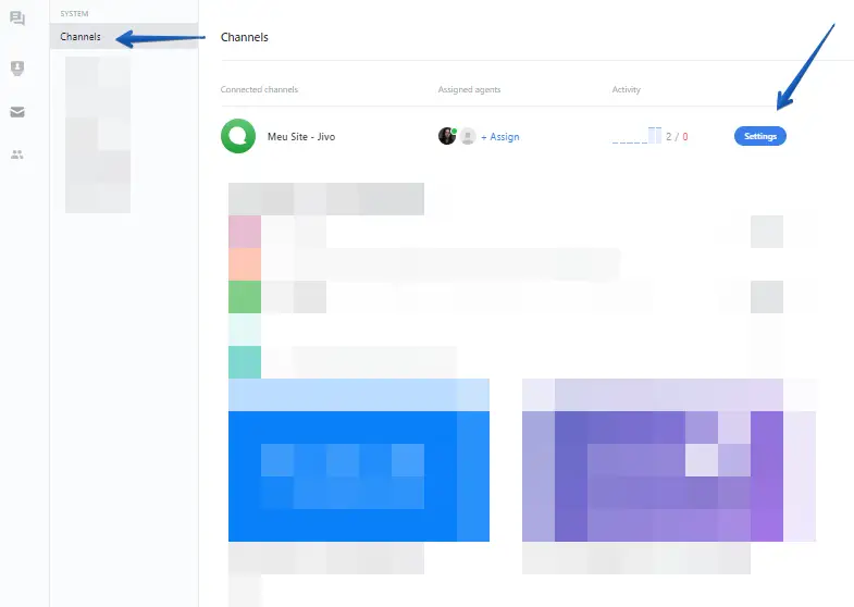 - Log in to your JivoChat account -> Click Manage -> Channels -> Channel Settings