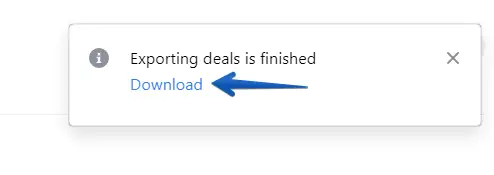 You will see a notification. Please keep in mind that this process might take a long time, depending on the number of deals you have in your app. It could take from 1 minute to 30 minutes. You can filter per deal so it doesnt take too long to download all of them.