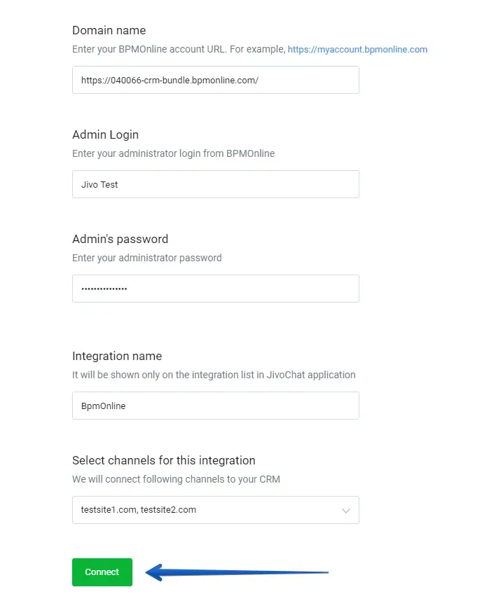 After that, the connection page will open and you will need to fill in the following fields: