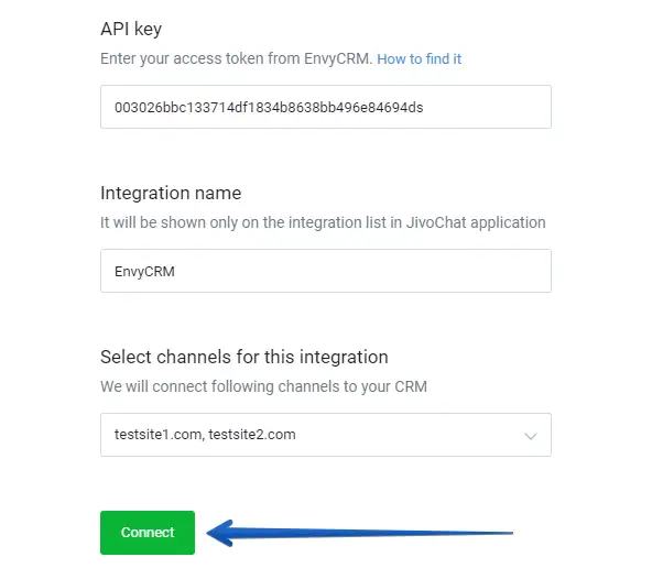 1.API key. In EnvyCrm go to Settings > Integration > API, then click the button "Get API Key".
