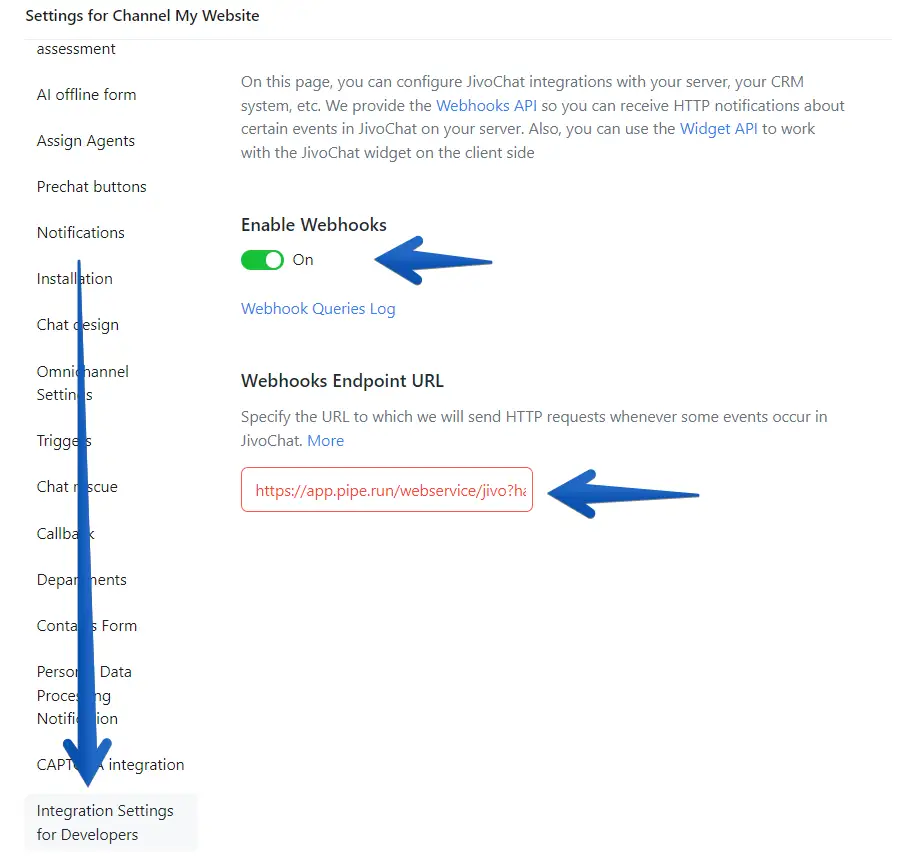 Method 2: Integration through the PipeRun panel and Webhooks in JivoChat