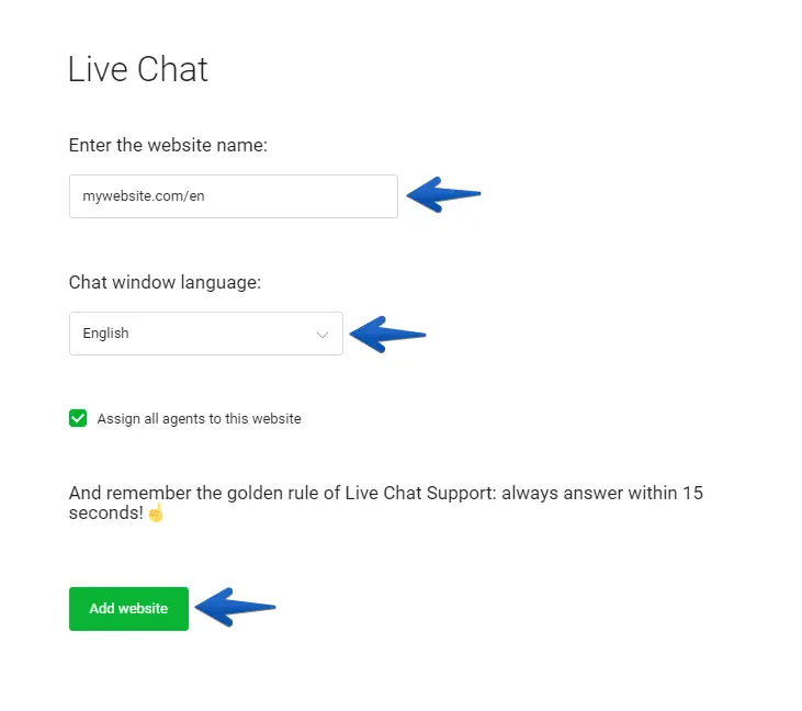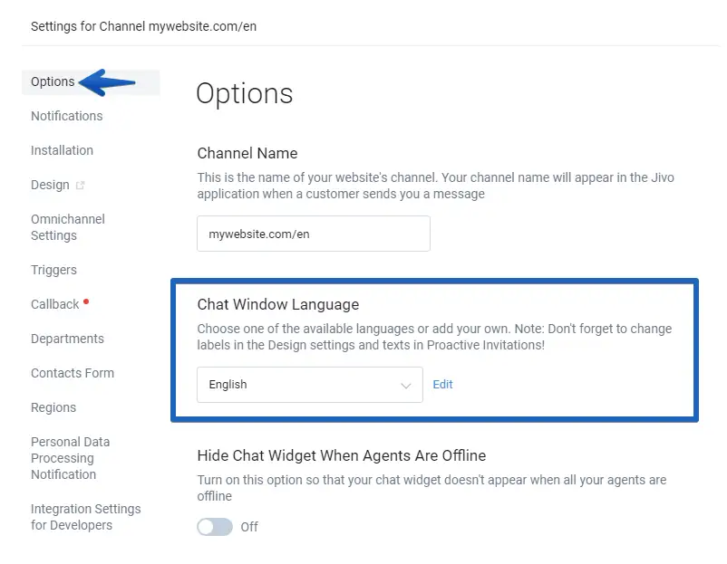 Next, if you didn't select the correct language in the channel creation or need to change the language, you should change the "chat window language" for these websites according to the website language.