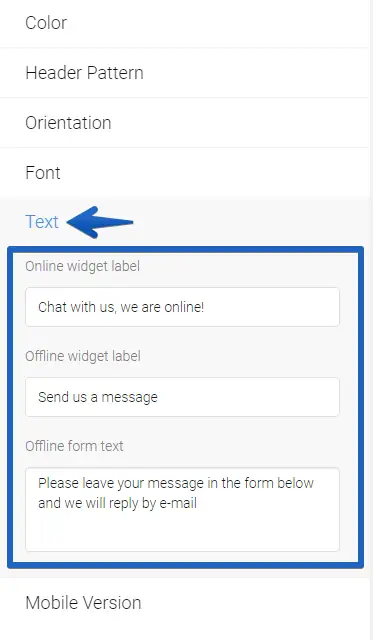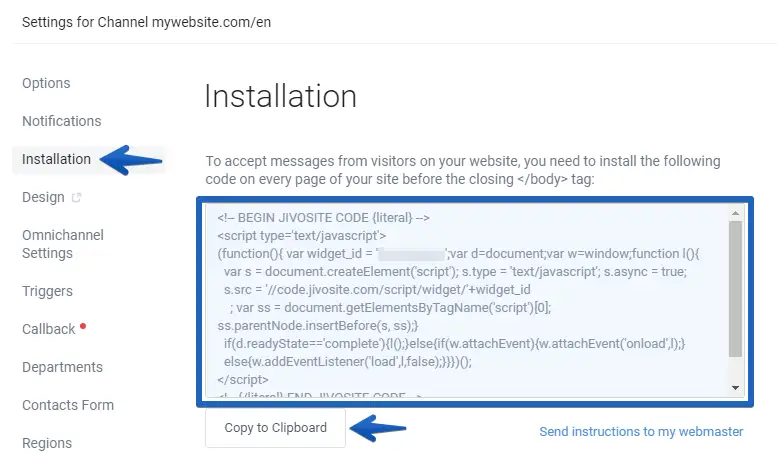 When you finish editing the language for the website, you should place the widget code on the corresponding language version of your website.