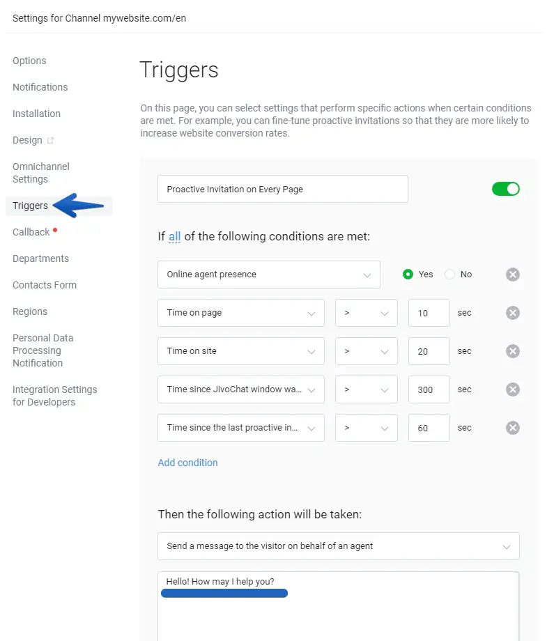 First, you should add a different website channel in the JivoChat app for each existing language template on your website.