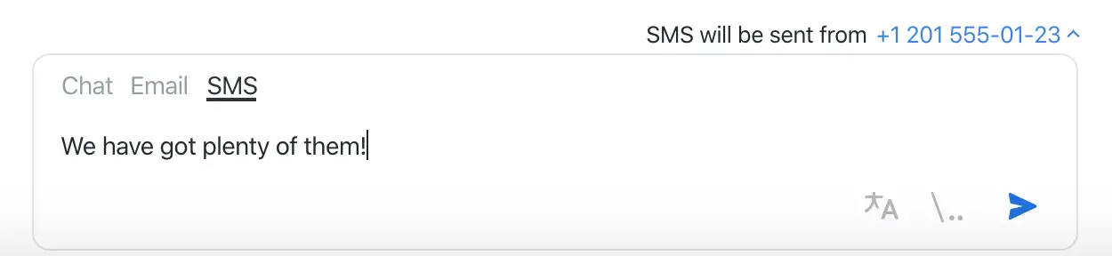 The SMS-message is only one click away from regular one — just switch to SMS input mode in JivoChat app in the chat input field and go for it. The SMS input mode will be available if visitor’s phone number is set in contacts — either it was provided by the visitor through the Contact Form or added by you manually.