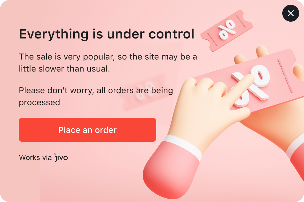 Be proactive and quick about updating your customers on technical issues, delivery delays or changes in your way of business. Use popups to show temporary and important information. Customer will appreciate your care and stay with you longer