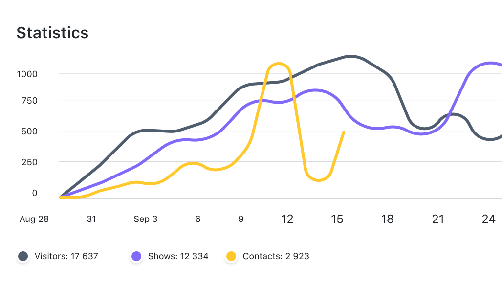 Track the effectiveness of your popup campaigns with statistics that shows your customer funnel and goal dynamics over time